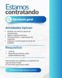 Experiência prévia como ajudante, servente, auxiliar operacional ou funções similares (opcional dependendo da vaga).