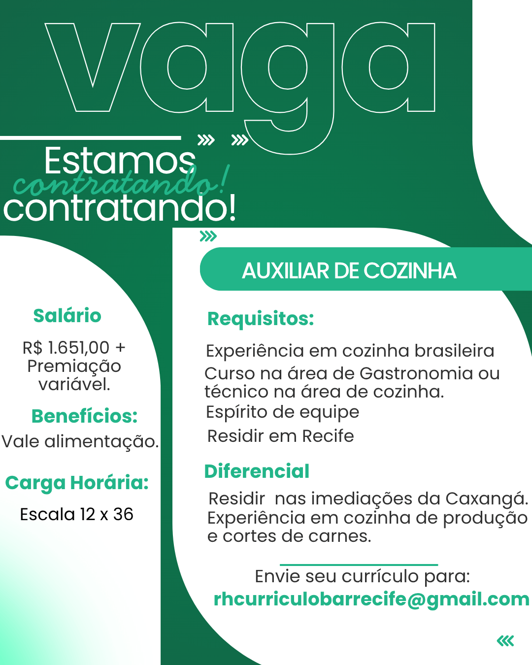 - Curso na área de Gastronomia ou técnico na área de cozinha.