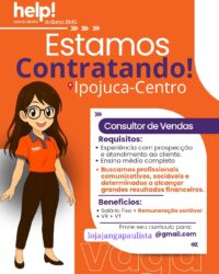 A Help! Loja de Crédito DO BANCO BMG *Unidade Ipojuca – Centro* está em expansão e busca profissionais comunicativos, proativos e determinados a alcançar grandes resultados.