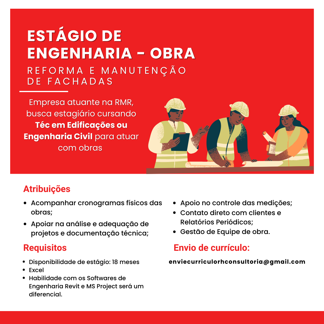 Estágio Engenharia Civil e Téc em Edificações – OBRA – RECIFE PE